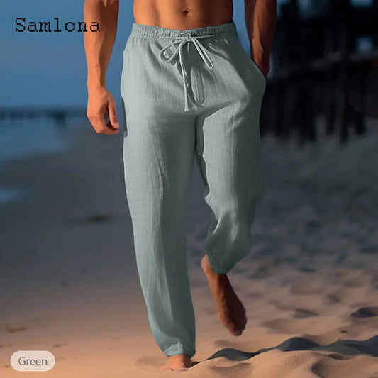 2024 America and Europe Fashion Leisure Cotton Pants Solid White Ankle-Length Trouser Plus Size Men Casual Drawstring Sweatpants
