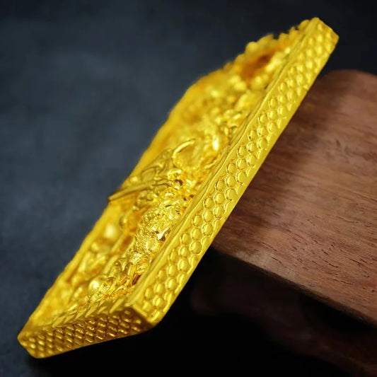 24K Real Gold 9999 Flying Dragon in Heaven Men's Necklace Thick Gold Flower Border Dragon Pendant Men's Gold Pendants Jewelry