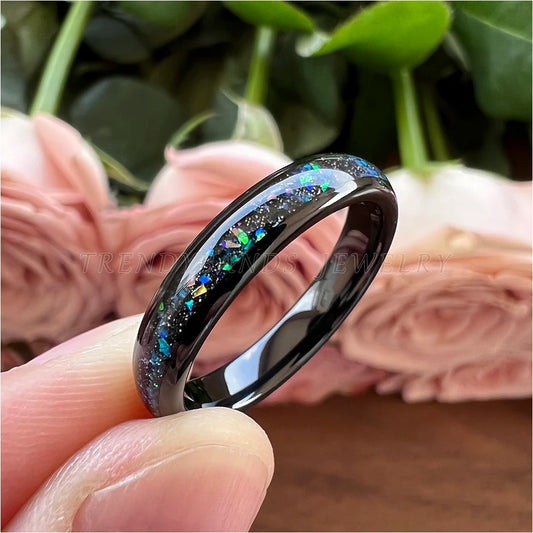 4mm Dropshipping Wholesale Black Tungsten Ring for Women Men Fashion Galaxy Opal Inlay Engagement Wedding Band