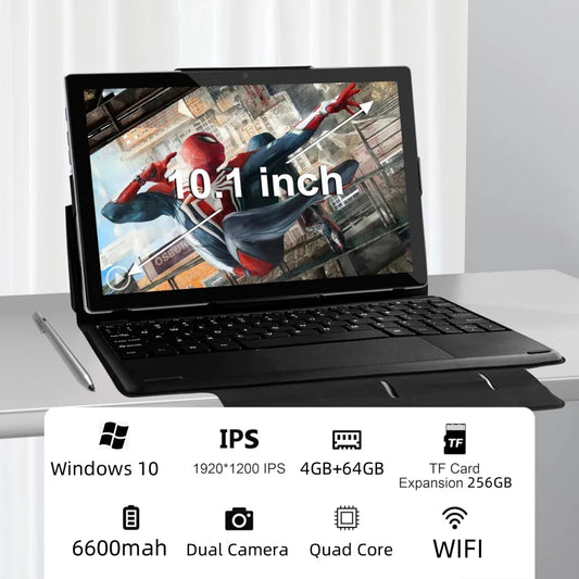 10.1 INCH 2in1 Windows 10 Tablet PC 4GB RAM 64GB ROM P7 Dual Camera1920 x 1280 IPS HDMI-Compatible 64 Bit USB 3.0 Quad Core