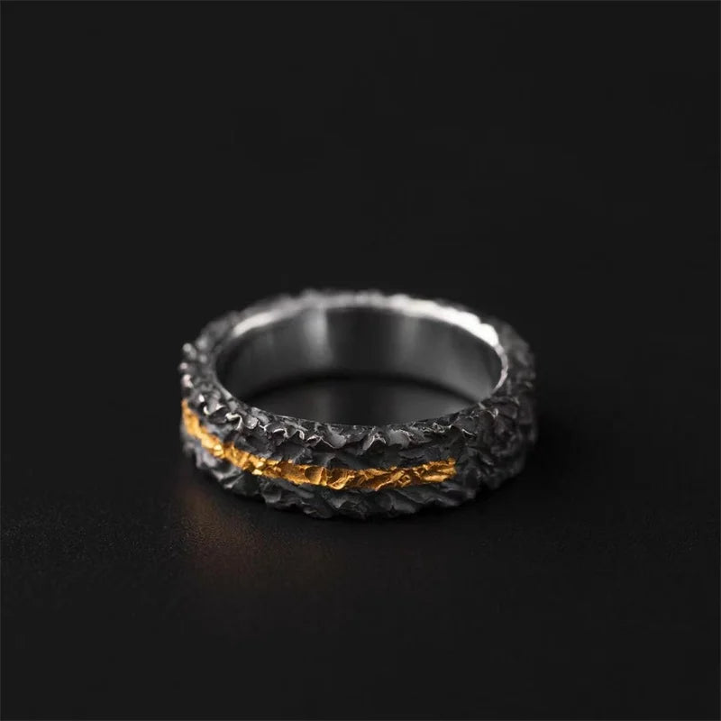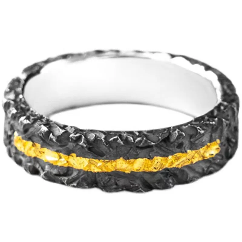 Vintage Gold Flame Design Black Collision Men Ring Open Size Personality 925 Ring Male Jewelry